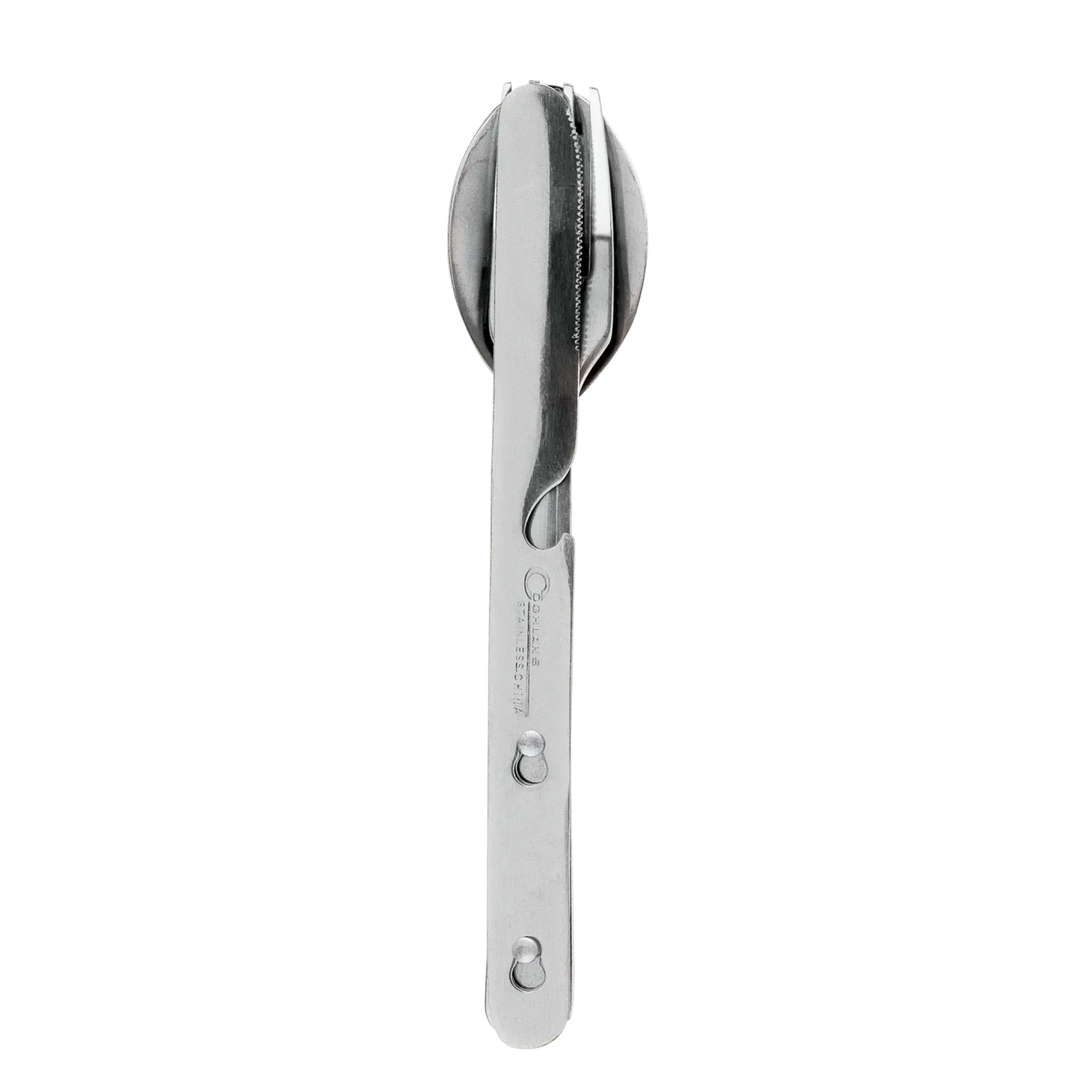 Coghlan's Cutlery Kit provides all the utensils you need in a compact, nested design. Featuring a stainless steel spoon, fork, and knife that lock together, this set is portable and eliminates the need for single-use plastic cutlery. It's great for traveling, camping, or just to carry with you in your backpack or purse.