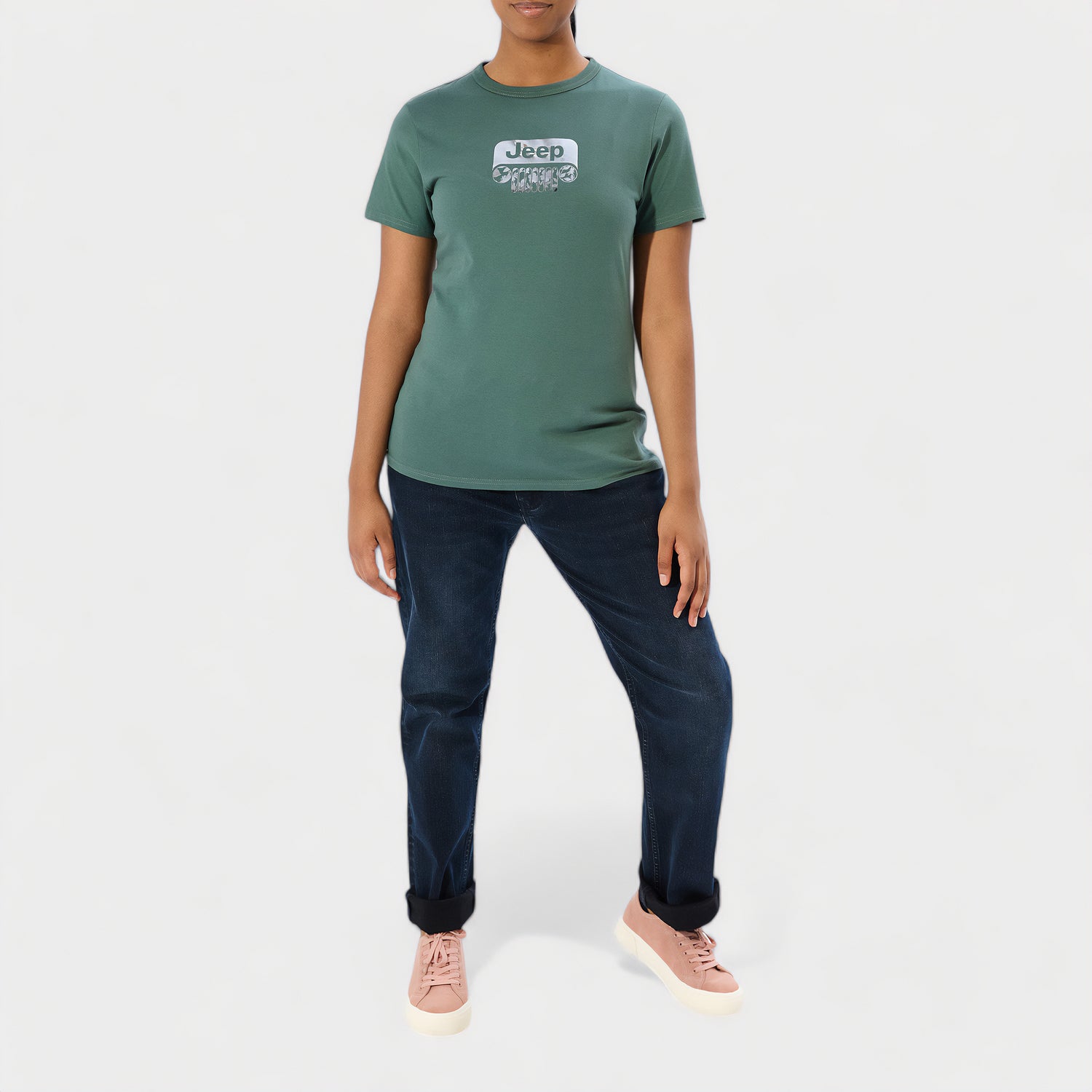 Jeep Ladies Essential Organic T-shirt - S / Sage is backordered and will ship as soon as it is back in stock.