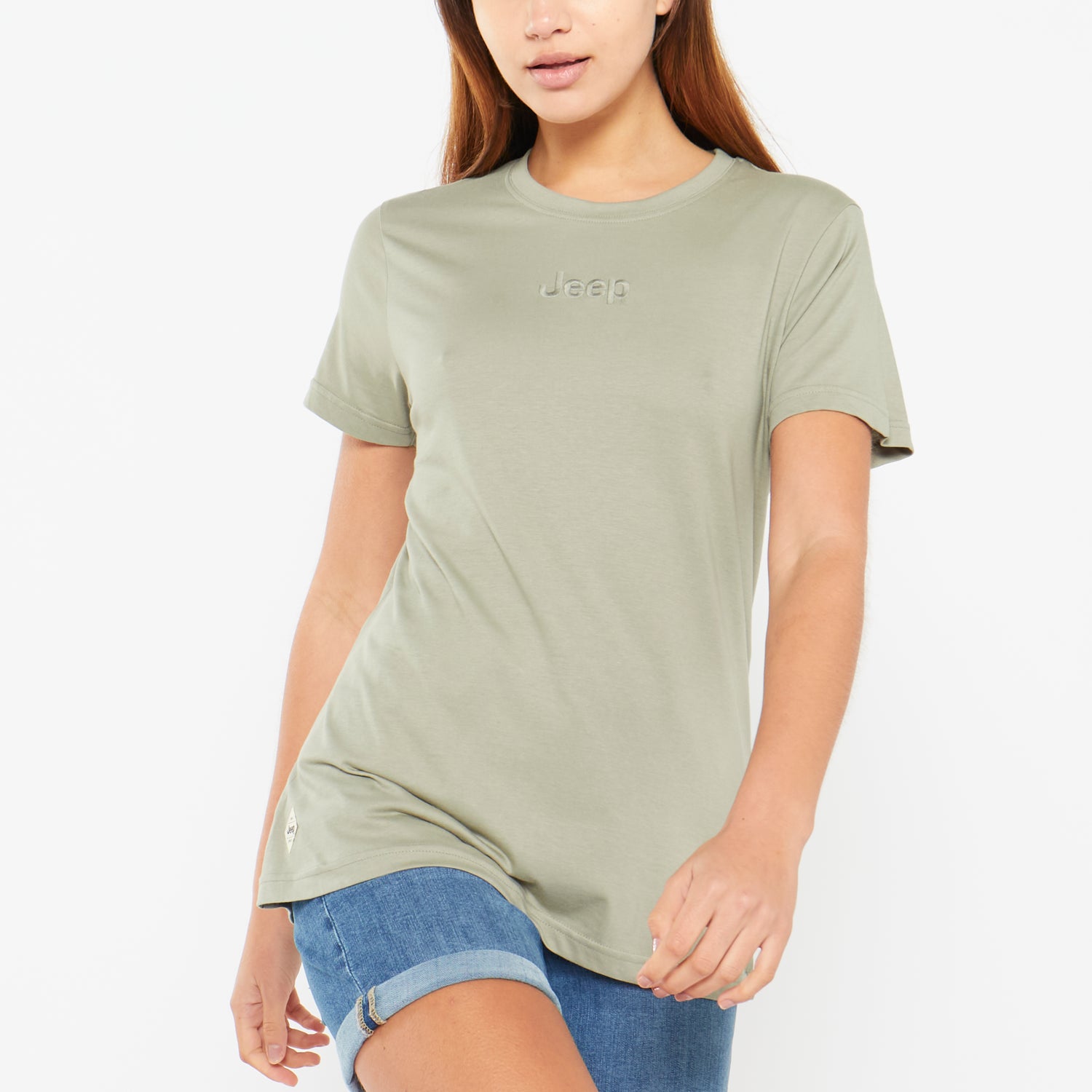 Jeep Ladies Small Logo Embroidered T-shirt - M / Silvered Green is backordered and will ship as soon as it is back in stock.