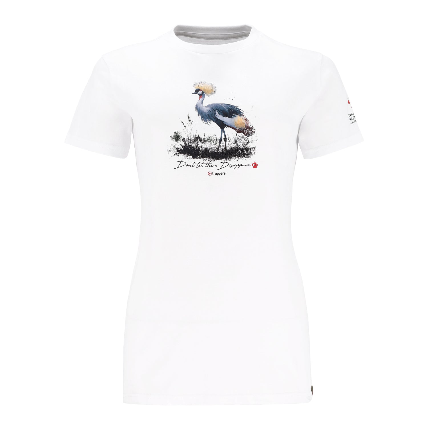 Trappers EWT Ladies Blue Crane T-shirt - S / White is backordered and will ship as soon as it is back in stock.