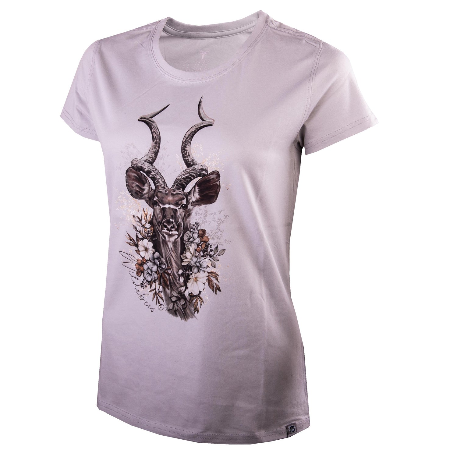 Wildebees Ladies Alluring Kudu T-Shirt - S / Fog is backordered and will ship as soon as it is back in stock.