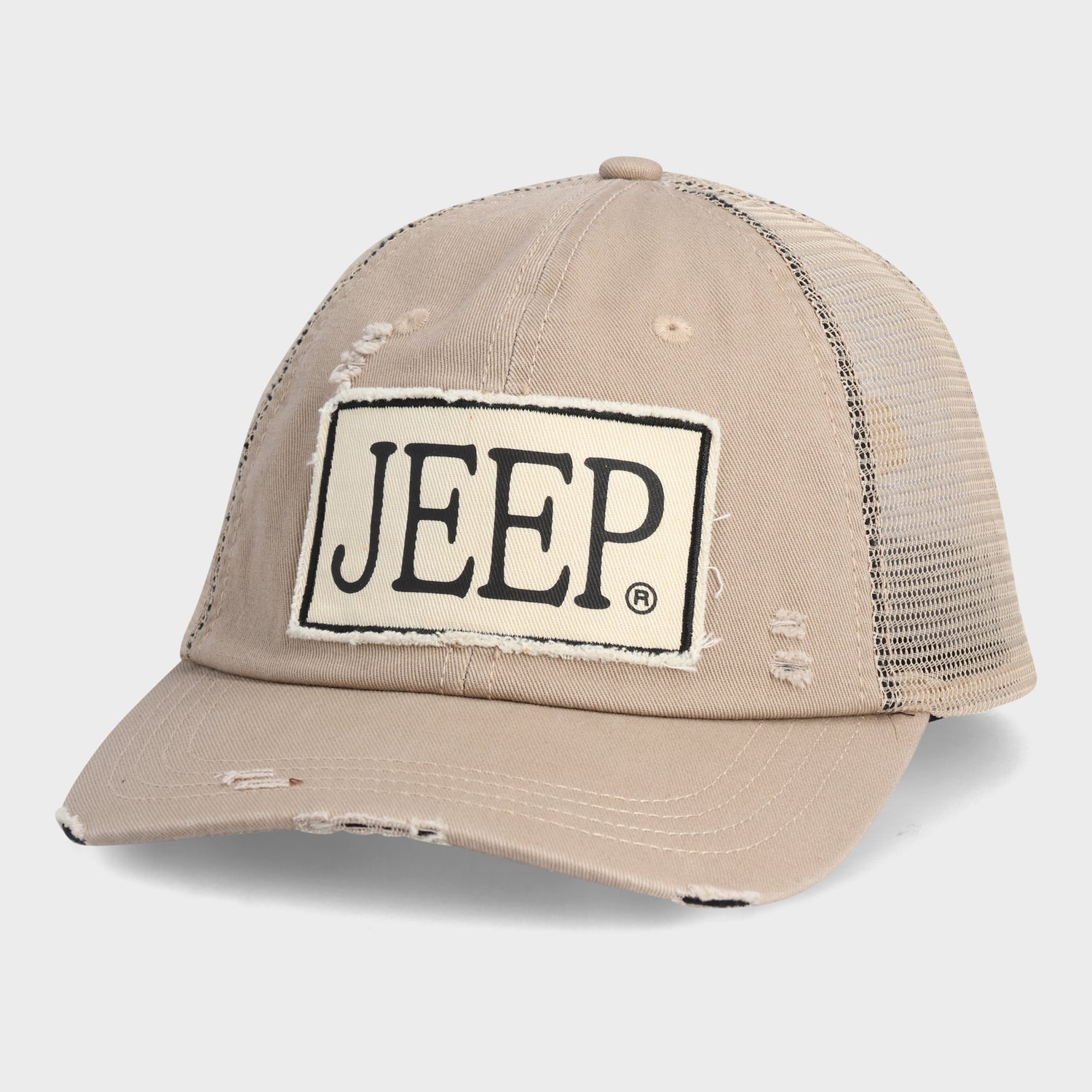 Jeep Distressed Trucker Cap - STD / Khaki is backordered and will ship as soon as it is back in stock.