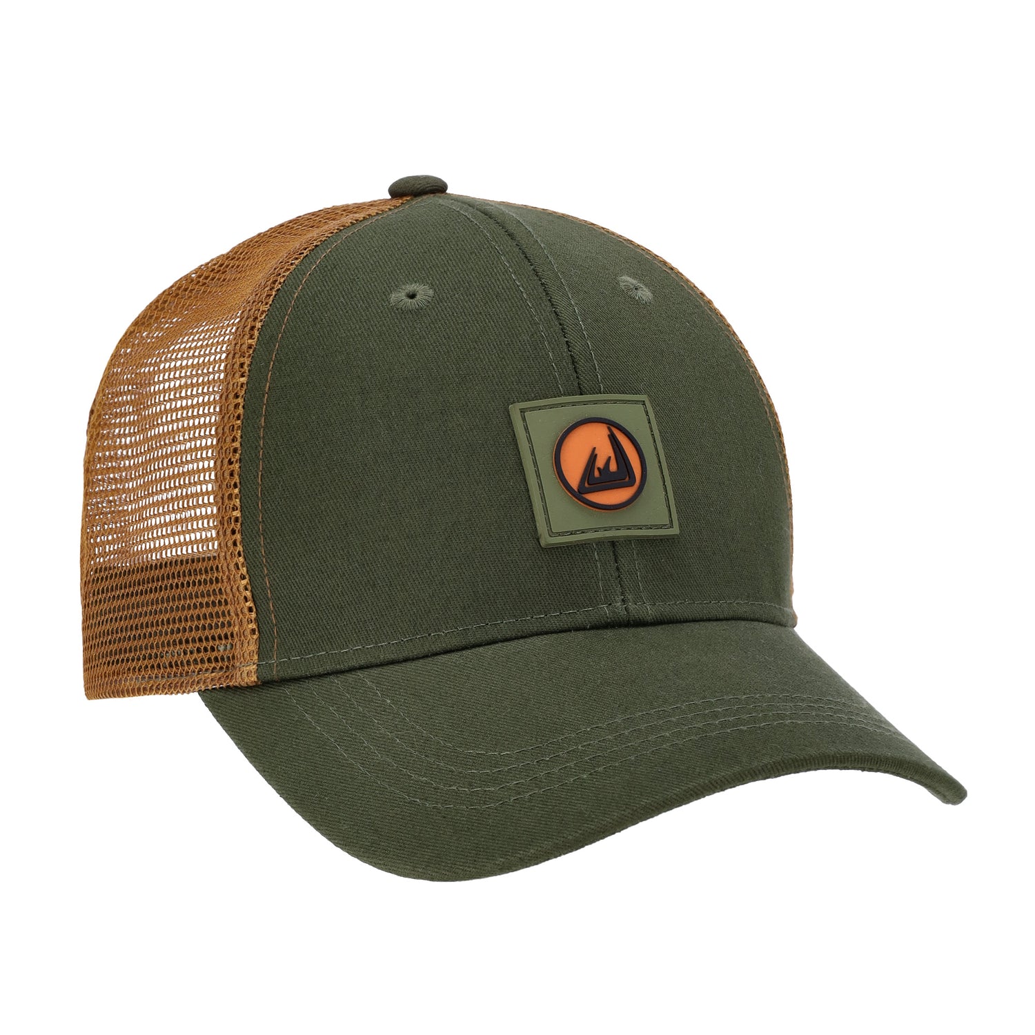 Trucker cap with mesh backing and front logo design