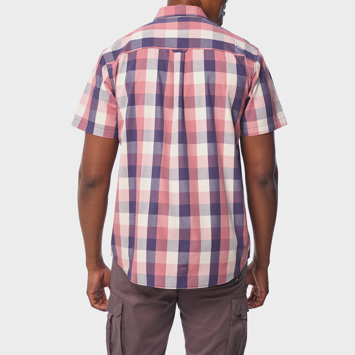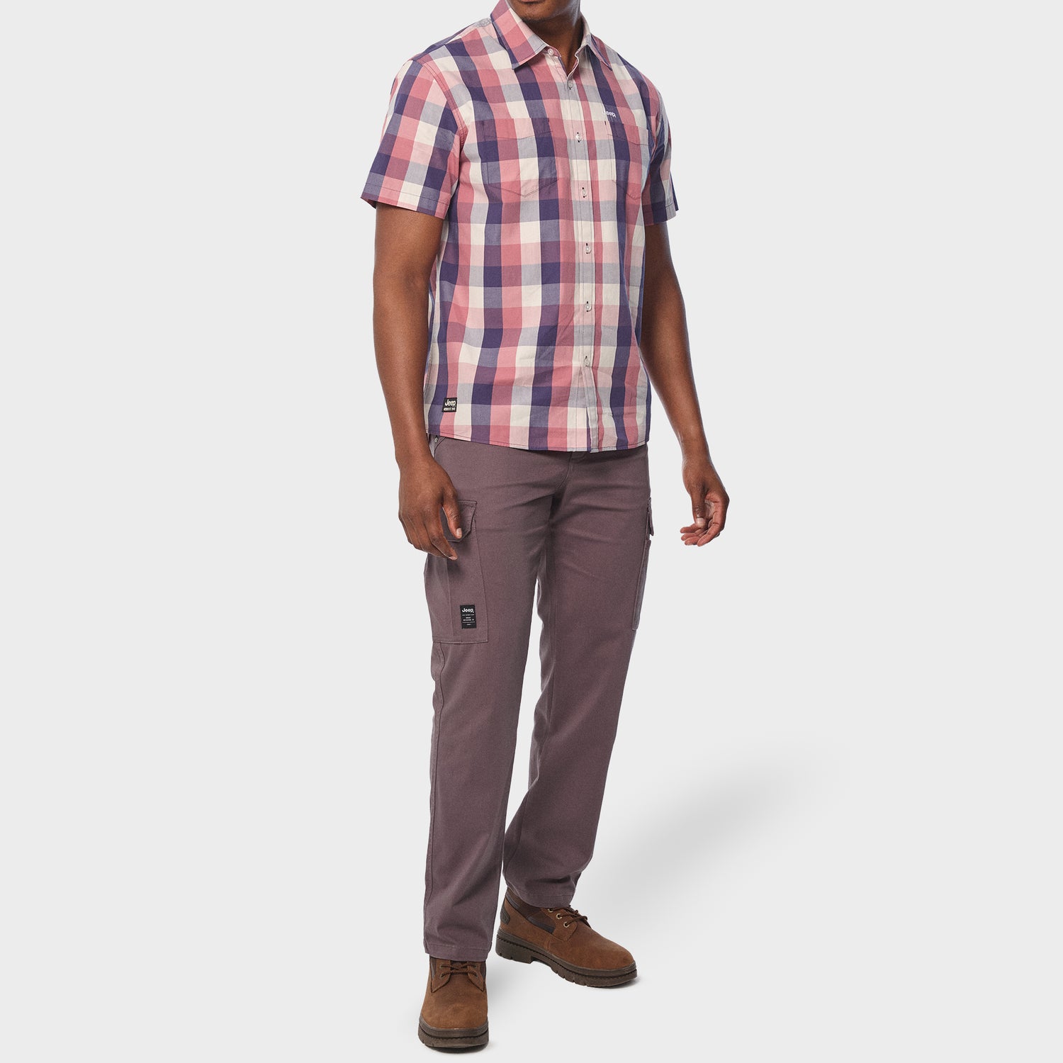 This short-sleeve check shirt features a comfortable regular fit and includes a handy single chest pocket for added convenience.