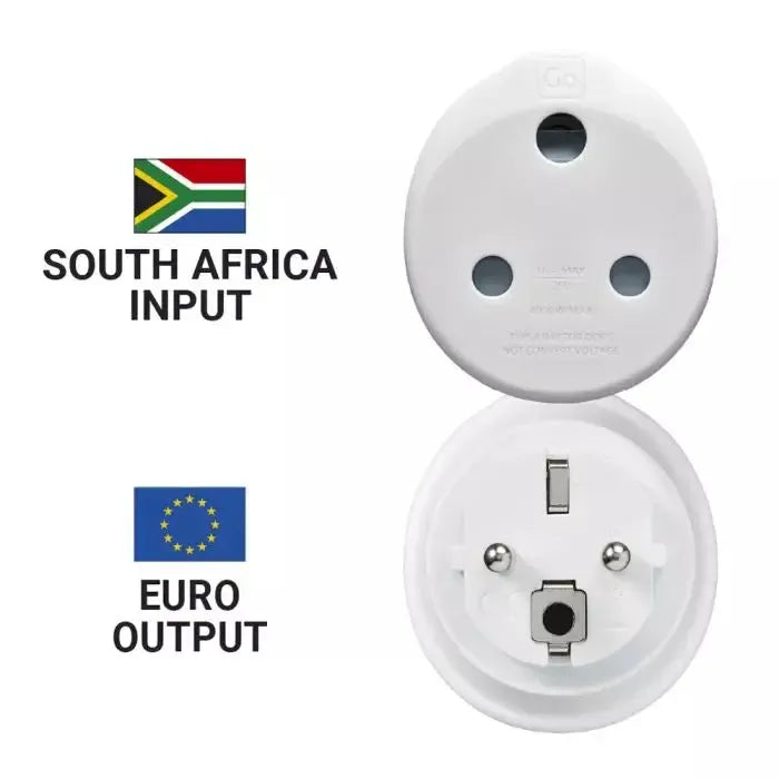 A truly reliable travel adaptor that instantly connects South African travellers to Europe. This compact adaptor converts South African 3-pin plugs to fit Europe 2-pin sockets. Designed with safety as a first priority, its robust and tough construction, effortlessly stands up to the rigours of regular travel.